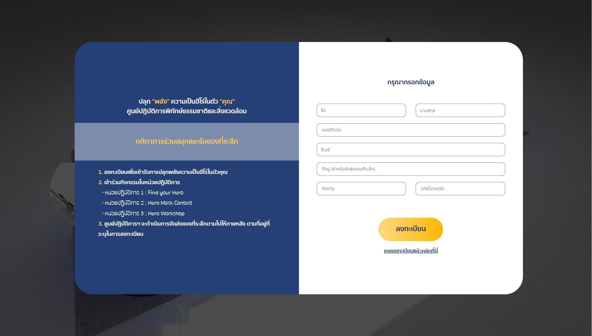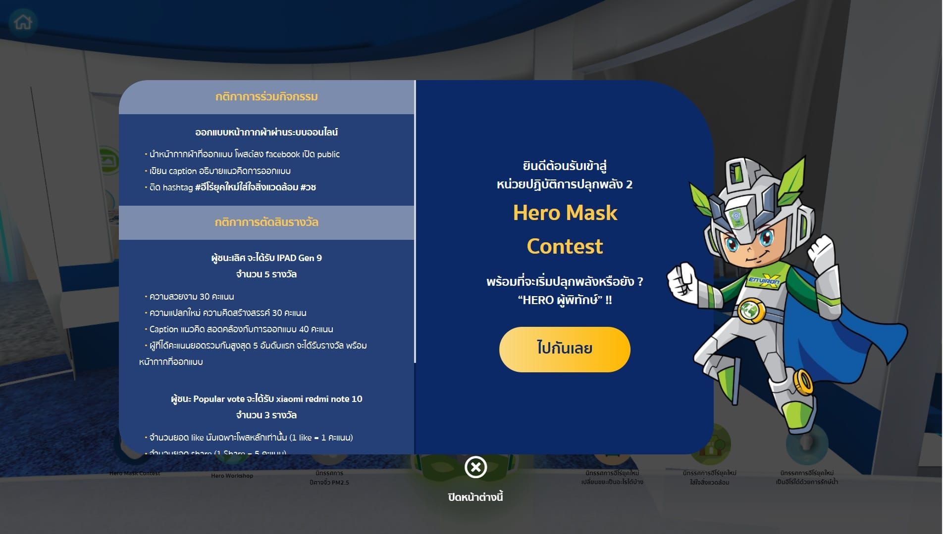 Link : https://nabladigital.biz/project/zentrum/ ศูนย์บัญชาการพิทักษ์สิ่งแวดล้อม - ระบบ Register - Quizs ก่อนเข้ารวมเดินใน Virtual - Pop-Up Event ภายใน Virtual